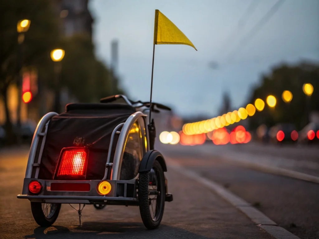 - Для вечерних поездок установите светоотражатели и фонари на прицеп или кресло.