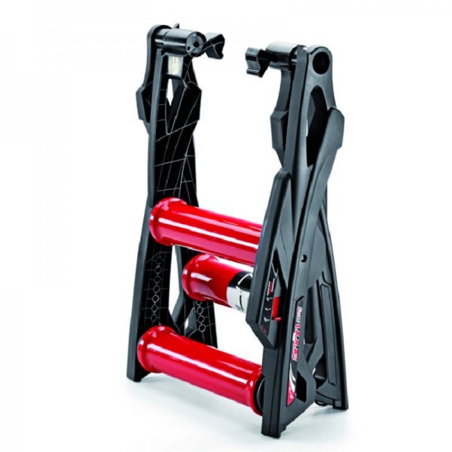 Ролики выполнены из прочного пластика, что делает использование бесшумным. Параболическая форма роликов облегчает движение на станке и исключает соскакивание. Подшипники промышленные закрытого типа, отвечают за плавную и бесшумную работу велостанка. Базовое расстояние регулируется в диапазоне 94-110см, в зависимости от типа и размера велосипеда.